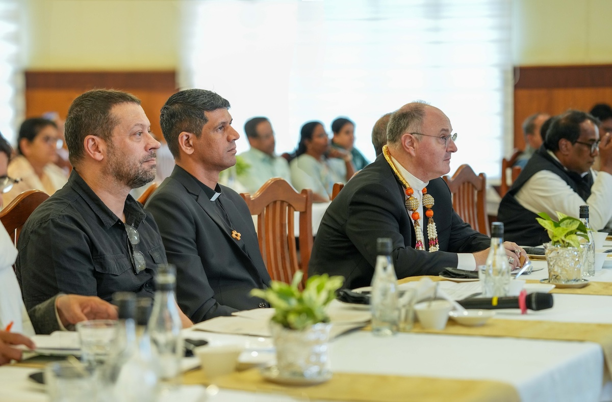 During his official visit, Professor Álvaro Barbosa was also invited as a guest delegate of the celebrations of the Golden Jubilee of the Darmaharan Colleage, held at CHRIST University, together with both Vice-Chancellors of the visited universities. The event featured a visit from Archbishop Carlo Maria Polvani, Secretary of the Vatican Dicastery for Culture and Education and the Pontifical Council for Culture, and brought together church leaders, educators, and representatives of Catholic institutions for a forum entitled “Listening with the Heart: A Shared Journey in Education and Culture.”