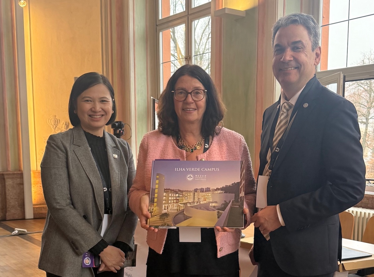 [From left to right: Dr. Teresa Loong, Vice Rector for Student Life at USJ with Prof. Dr. Gabriele Gien, President of KU Eichstätt-Ingolstadt, and Prof. Dr. Klaus Stüwe, its Vice President for International Affairs during the VI UNIVERSITATE Global Symposium]